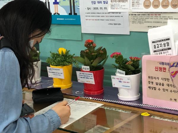 수택3동은 다른 지역에 비해 화훼농가가 많은 점에 착안해 코로나19로 지역경제가 침체된 상황에서 어려운 시기를 지역주민들과 함께 극복하고 응원의 메시지를 전달하고자 ‘1인1꽃 화분’비치를 추진했다.