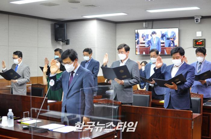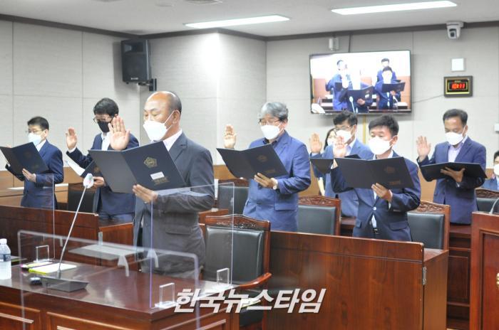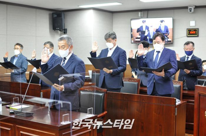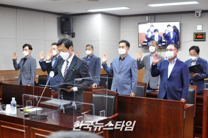 가평군의회 행정사무감사위원회 (위원장 최기호)는 행정사무감사에 앞서 한대희 부군수, 조규관 행정복지국장, 김구태 경제산업국장, 이기학 건설도시국장 및 산하 부서 소.과장의 “증인 선서”를 받았다.