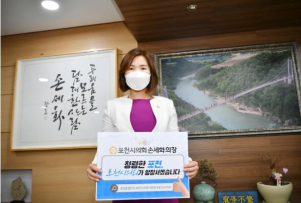 [한국뉴스타임=명기자] 손세화 포천시의회 의장이 2일 ‘청렴 챌린지’에 동참했다.