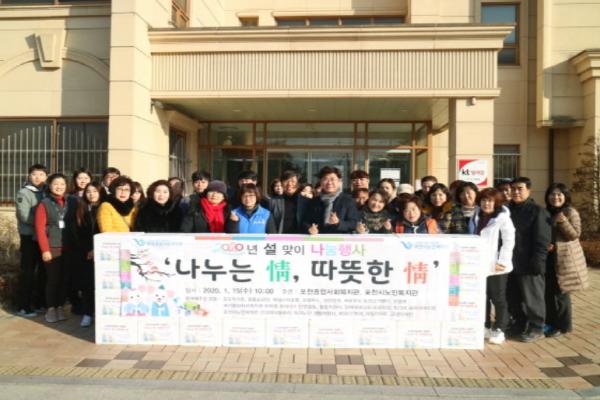 [KNT한국뉴스타임] 포천종합사회복지관, 포천시노인복지관(관장 이종범)은 지난 15일 다가오는 설 명절을 맞아 2020년 설 나눔 행사 ‘나누는 정, 따뜻한 정’을 진행하였다.