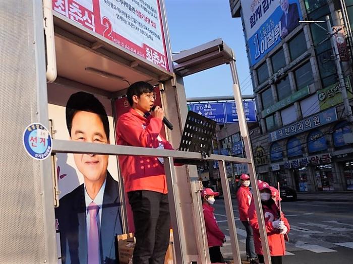 이날 연단에 오른 최민석(최춘식 후보 아들)씨는 “지금 젊은 세대를 뛰어넘어 모든 세대가 먹고 사는 문제가 가장 큰 문제다. 우리에게 필요한건 민생경제를 챙기고 현장 경험이 있는 경력자가 필요하다”며, “항상 지역 구석구석을 다니며 주민들의 목소리를 듣고, 지역의 문제점을 보고, 주민들을 대신해 입이 되어 준 일할 줄 아는 민생경제 전문가 최춘식을 지지해 달라”고 했다.