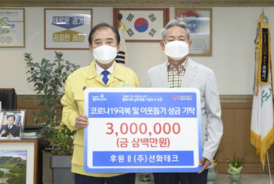 [한국뉴스타임=명기자] ㈜선화테크는 지난 3일 포천시 이웃돕기 성금으로 사회복지공동모금회에 300만 원을 기탁했다.