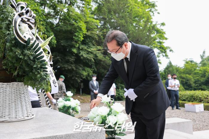 한편, 시는 코로나19 상황을 고려해 지난해에 이어 올해에도 추모 행사를 취소했으며 추모객을 위해 현충일 오전 9시부터 12시까지 자율 분향소를 운영하고 체온 측정 및 손 소독제 사용, 마스크 배부, 사회적 거리두기 안내 등 방문객들이 코로나19 방역 수칙을 준수하며 참배할 수 있도록 적극 지원했다.