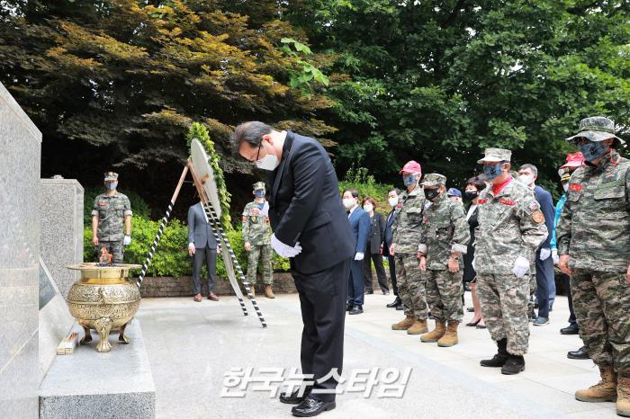 [남양주뉴스타임=이명수기자] 6일 조광한 남양주시장은 제66회 현충일을 맞이해 현충탑 자율 분향소에서 참배하며 나라를 위해 헌신한 순국선열을 추모하는 시간을 가졌다.
