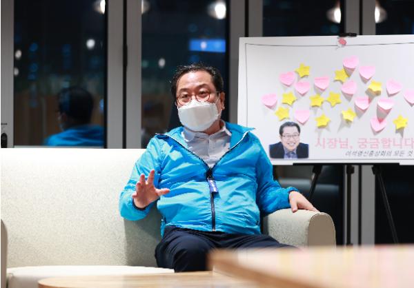 [한국뉴스타임=명기자] 남양주시 조광한 시장은 지난 7일 이석영신흥상회 5층 라운지에서 이석영신흥상회에 입주한 청년창업가 21명과 첫 번째 소통 간담회를 가졌다.
