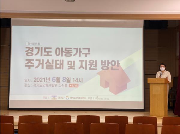 최은영 소장은 ‘경기도 아동가구 주거실태 조사’ 용역 결과를 발표하면서, 공공임대주택 입주를 통한 주거상향 이주지원과 주거바우처를 통한 주거비 부담 완화, 집수리 개선 지원 확대 등의 지원이 필요함을 제안하였다.