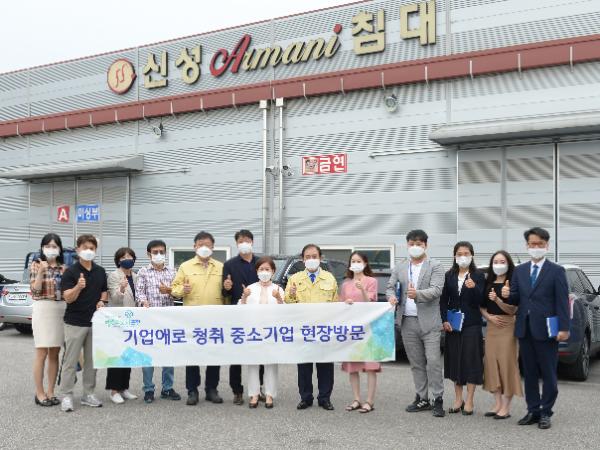 이번 기업 방문은 박윤국 시장, 기업지원과장, 소흘읍장, 가산면장, 이장 등이 참석하고, 기업의 규제 파악 및 제도개선을 위해 법무규제개혁팀 담당 주무관도 함께 배석했다. 회의는 기업의 애로 및 현안사항을 청취하고 해결방안을 모색하기 위한 간담회, 기업소개와 대표 인사말씀, 시장 격려말씀, 공장제조시설 견학 등으로 진행됐다.