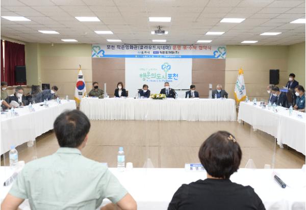 [한국뉴스타임=명기자] 포천시는 8일 코로나19로 1년 가까이 휴관한 포천 작은영화관(클라우드시네마)의 재개관을 위해 위수탁 협약식을 체결했다.