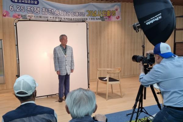 [한국뉴스타임=명기자] 남양주시 퇴계원읍 주민자치위원회는 지난 8일 호국보훈의 달을 맞아 라미 현 사진작가와 함께 관내 6·25 전쟁 참전용사 어르신 10여 분을 모시고 기념사진 촬영 행사인 ‘프로젝트 솔져’를 진행했다.