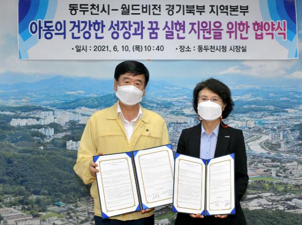 [한국뉴스타임=명기자] 동두천시는 지난 10일 동두천시청 시장실에서 최용덕 동두천시장과 김민숙 월드비전 경기북부지역본부장 및 관계자들이 참석한 가운데, “꿈꾸는 아이들” 사업 추진을 위한 동두천시와 월드비전 간 업무협약을 체결했다.