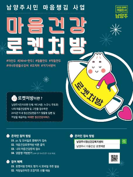한편, ‘마음건강 로켓처방’은 다양한 분야에서 상담을 받을 수 있으며, 남양주시정신건강복지센터 홈페이지, 전단지 내 QR코드, 포털 사이트 검색 등을 통해 접속 가능하다.