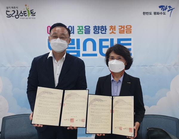 [한국뉴스타임=명기자] 파주시는 지난 10일 월드비전경기북부지역본부와 취약계층 아동들을 대상으로 하는 ‘꿈꾸는아이들’ 사업 지원을 위한 업무협약(MOU)을 체결했다.