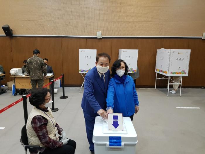 [포천뉴스타임=이기자] 지난 10일 오전 4·15총선 포천시가평군선거구 더불어민주당 이철휘 후보는 부인 이경원 씨와 함께 포천시 포천동 포천문화원 대강당 3층에 마련된 투표소에서 사전투표했다.
