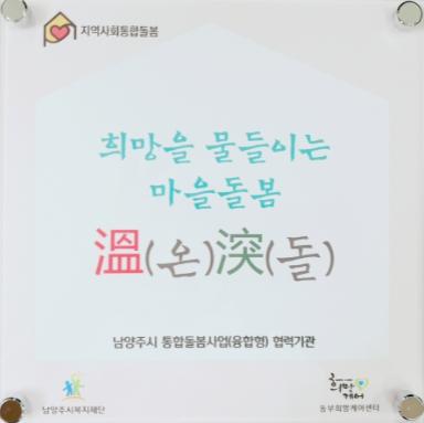 [한국뉴스타임=명기자] 남양주시사회복지관 동부희망케어센터는 지난 11일 통합돌봄(융합형) ‘희망을 물들이는 마을돌봄 溫湥(온돌)’사업의 업무협약식을 체결하였다.
