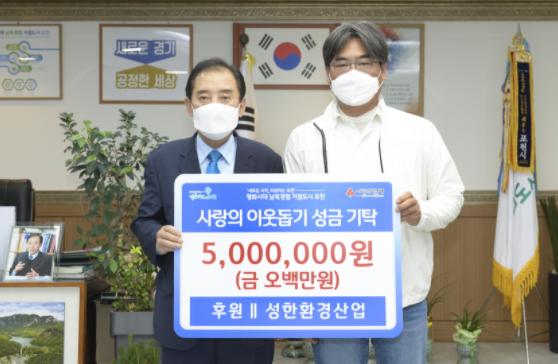 [한국뉴스타임=명기자] 포천시는 지난 16일 군내면 소재의 성한환경산업이 지역아동센터 후원을 위해 성금 500만 원을 사회복지공동모금회에 지정 기탁했다고 밝혔다.