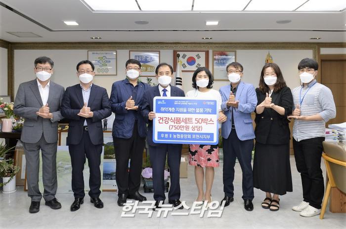 [한국뉴스타임=명기자] 지난 15일 포천시 신읍동 소재 농협중앙회 포천시지부 (지부장 박윤경)는 관내 취약계층 지원을 위해 총 750만 원 상당의 건강식품꾸러미 50박스를 포천시에 기탁했다.