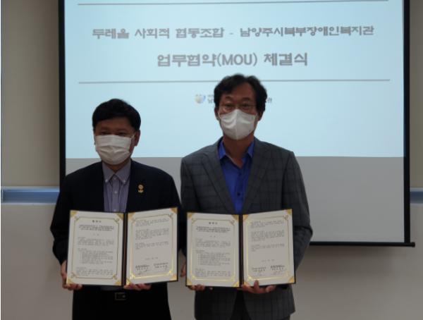 [한국뉴스타임=명기자] 남양주시북부장애인복지관과 두레울사회적협동조합은 지난 10일 남양주시북부장애인복지관에서 장애인 활동 지원 사업 활성화 및 장애인 복지 발전을 위한 업무 협약을 체결했다.