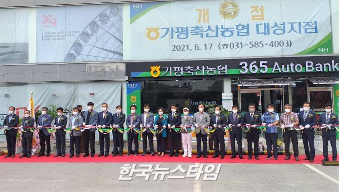 [한국뉴스타임=이명수기자] 17일 가평군 가평축산농협 (조합장 조규용) 대성지점이 개점식을 갖고 영업을 개시하였다.