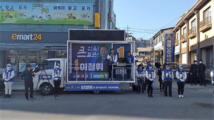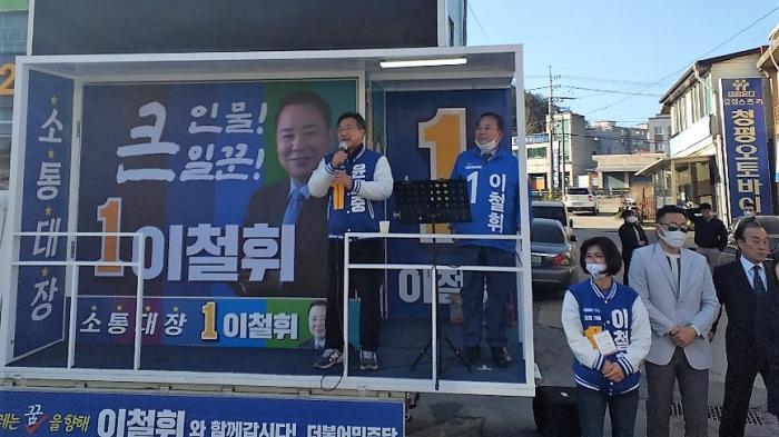 가평 출신 윤호중 사무총장은 가평읍, 청평면 유세에서 코로나19의 어려움 속에서 며칠째 확진자가 줄어들고 있어 다행이라며 가평군민이 문재인 대통령에게 힘을 실어 줄 것을 호소했다. 이어 이철휘 후보의 당선을 자신한다며 이 후보는 ROTC 중 육군 대장이 된 몇 안 되는 특별한 분이라고 부각했다. 이에 반해 상대 당 최 후보는 지난 지방선거에서 도의원에 떨어진 사람이라고 평가 절하했다.