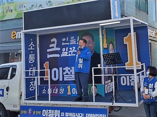 [가평뉴스타임=보도국] 13일 더불어민주당 윤호중 사무총장이 이철휘 후보 지지연설을 포천시 포천동, 가평군 가평읍, 청평면에서 릴레이 유세 강행군을 진행했다.