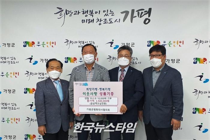 [한국뉴스타임=이명수기자] 17일 가평군평화대사협의회 (지부회장 이종효, 협의회장 육도수)는 가평군에 덴탈마스크 1만장을 후원하였다.