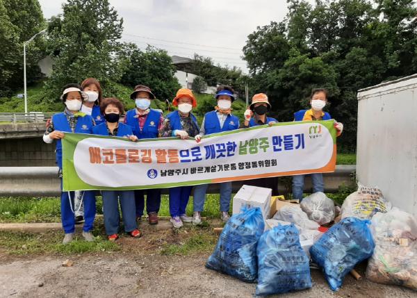 [한국뉴스타임=명기자] 바르게살기운동 남양주시협의회 양정동위원회(위원장 천인순)는 17일 홍릉천 주변 산책로에서 에코플로깅(Eco-plogging) 활동을 실시했다.