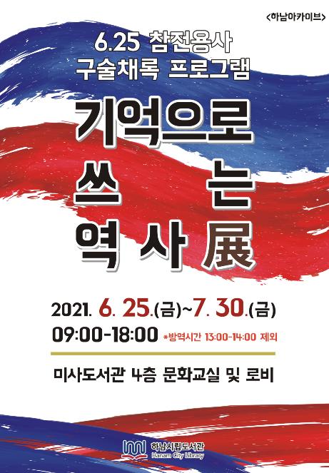 [한국뉴스타임=명기자] 하남시는 6.25 전쟁 71주년을 맞아 이달 25일부터 7월 30일까지 미사도서관 4층에서 6.25 참전용사 구술채록 전시회 ‘기억으로 쓰는 역사 展’을 개최한다고 밝혔다.