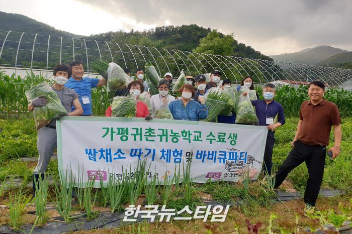 [가평뉴스타임=이명수기자] 지난 20일 가평귀촌귀농학교에서는 지난기수 수료생을 대상으로 쌈채소 따기 체험 및 바베큐 파티를 진행하였다.