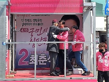 특히 이날 권영해 전 국방부장관이 유세현장을 찾아 최춘식 후보를 지지하며 격려했다.