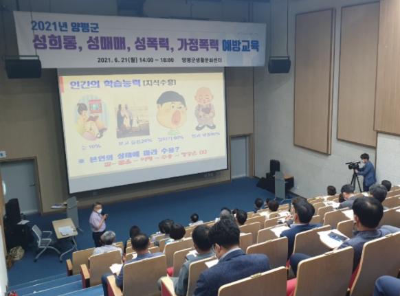 [한국뉴스타임=명기자] 양평군에서는 지난 21일 생활문화센터에서 군수를 포함한 고위직 공무원들을 대상으로 성희롱·성매매·성폭력·가정폭력 예방교육을 실시했다.