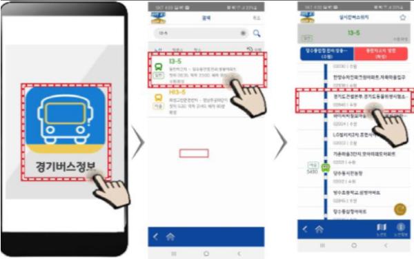 ‘승차벨 서비스’는 경기버스정보 앱의 ‘승차벨’ 버튼을 누르면 탑승하고자 하는 버스의 운수종사자에게 정류장에 대기 중인 승객이 있음을 음성으로 미리 알려줌으로써 버스가 정류장에 정차하도록 하는 서비스이다.