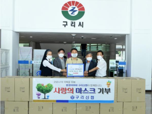 이날 전달받은 KF94 마스크는 구리시 지역아동센터 16개소에 각 600매씩 배부하여 코로나19 확산 방지에 사용될 예정이다.