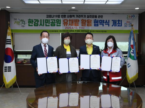 이번 협약은 코로나19 확산 차단을 위한‘고강도 거리두기’일환으로 제20회 구리유채꽃 축제를 전격 취소한 후속 조치로써 한강시민공원의 유채 일부를 꽃이 피기 전 수확하여 유채김치, 나물, 전 등으로 만들고 코로나19에 지친 취약계층에 전달하여 면역력 증강 등에 도움을 드리기 위한 것이다.