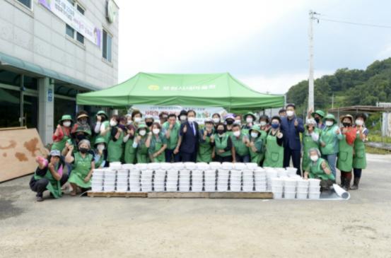 이경묵 회장은 “무더운 날씨에 참여해주신 새마을 여러분과 송태선 대표이사께 감사드리며, 코로나19로 어려운 우리 이웃들에게 전달하여 함께 잘사는 공동체를 만들도록 노력하겠다.”고 전했다.