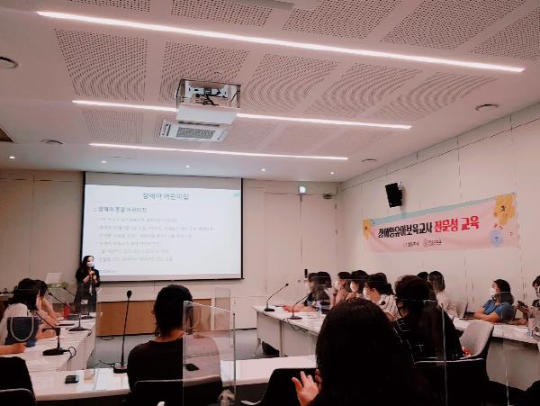장애영유아 보육교사 전문성 교육은 장애아 통합 보육의 이해와 영유아 교육 진단 및 개별화 교육 계획 수립, 장애아 통합 보육 운영 어린이집 방문 등의 교육을 통해 장애아 통합 보육 활성화 및 내실화에 기여하고 있다.