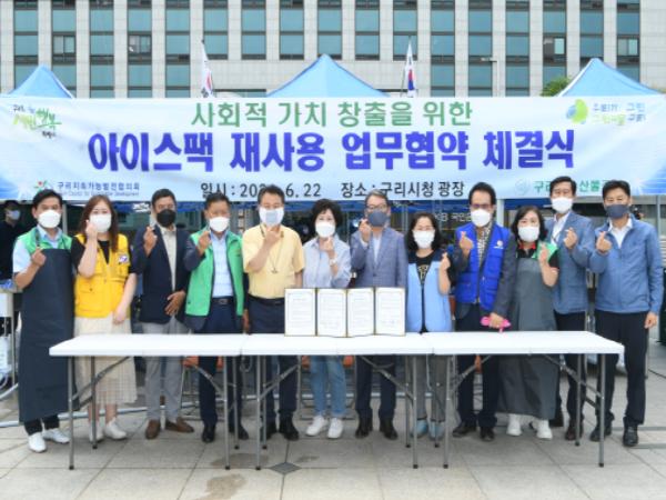 [한국뉴스타임=명기자] 구리시는 민관협력단체인 구리지속가능발전협의회와 22일 시청 앞 광장에서 구리농수산물공사와의 아이스팩 재활용을 위한 업무협약을 가졌다.