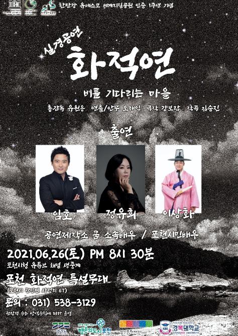 포천시와 경기문화재단은 오는 26일 저녁 8시 30분부터 화적연 야외무대에서 창작 실경공연 '화적연: 비를 기다리는 마을'을 개최한다고 밝혔다.