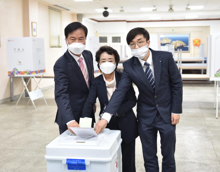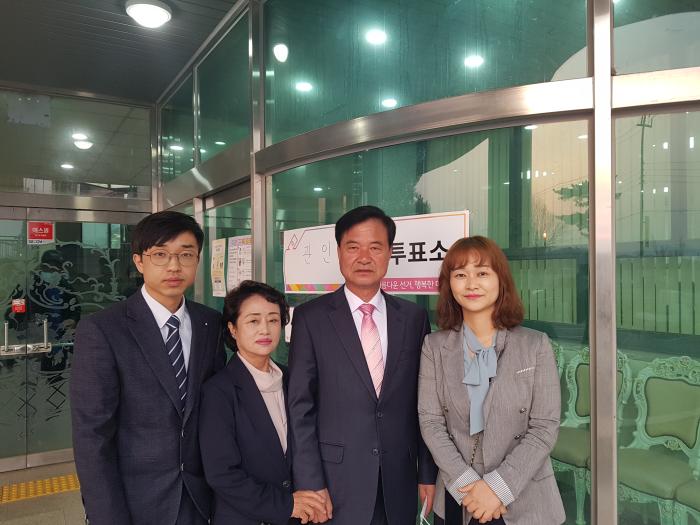 투표가 시작한 오전 6시, 미래통합당 최춘식 후보는 가족들과 함께 관인면 제1투표소(관인면민회관)를 찾아 투표를 실시했다.