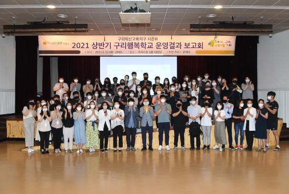 [한국뉴스타임=명기자] 구리시는 22일 시청 1층 대강당에서 구리 행복학교 운영에 함께한 마을강사를 비롯해 학부모 모니터링단, 참여 학부모 등 80여 명을 대상으로 2021년 상반기 구리 행복학교 운영결과 보고회를 가졌다.