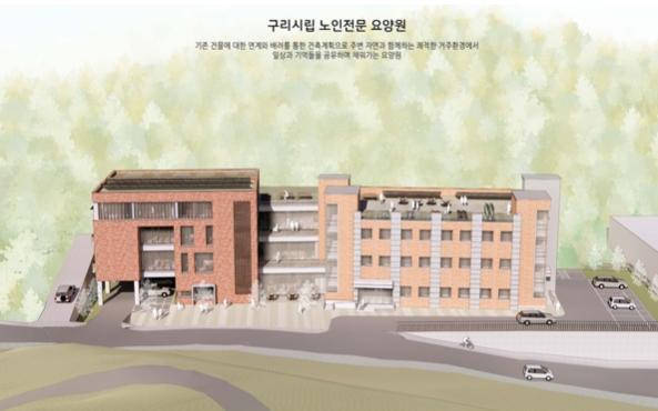 노인인구의 증가와 더불어 필연적으로 동반되는 장기요양 등급자도 증가하여 시립요양원의 입소 대기인원이 날로 증가함에 따라, 이번 구리시립노인전문요양원 증축 사업을 통해 현재 80인 정원의 시설을 140인 정원으로 확충할 예정이다. 또한, 2개소의 치매전담실을 별도로 마련해 관내 치매노인 보호를 강화하고 가족부양의 부담은 완화할 계획이다.