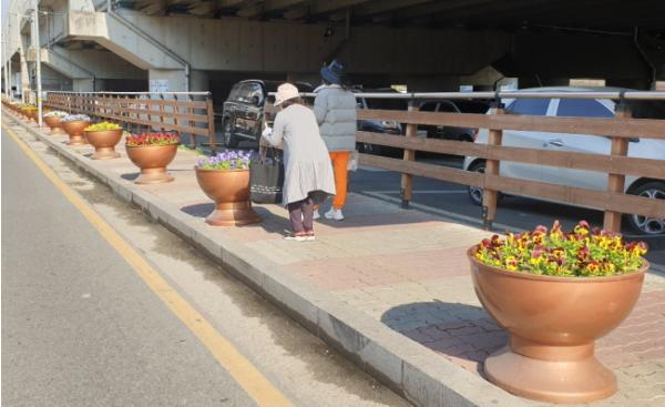이번 꽃묘 식재 작업을 통해 퇴계원역 2번 출구를 중심으로 가로화분 43개가 약 10m 간격으로 배치되었다.