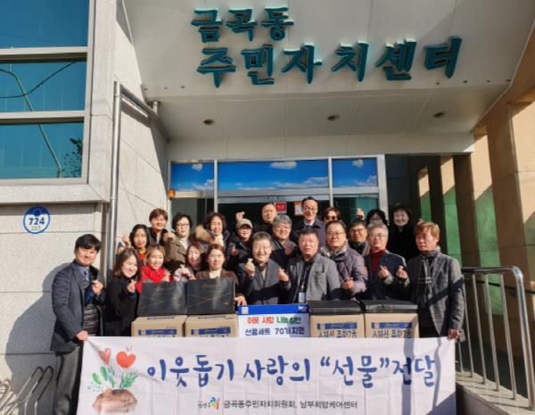 [KNT한국뉴스타임] 남양주시 금곡동 주민자치위원회(위원장 이화수)는 설을 맞아 지난 16일 지역내 취약계층을 위한 후원물품 70개를 남부희망케어센터에 전달했다.