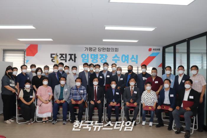 [한국뉴스타임=이명수기자] 24일 최춘식 국회의원이 국민의힘 가평군 당원협의회 당직자 임명장 수여식을 가평군 지역사무실에서 진행하였다.