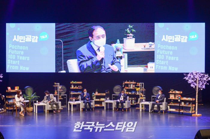 마무리 토크에서는 “지금까지 코로나와 ASF 등 5대 바이러스로 어려운 상황이었으나 시민과 약속한 사업이기 때문에 이를 차질없이 해나가야 한다고 생각한다. 포천의 미래 100년은 시민에게 달려 있다. 시민과 함께 살고 싶은 도시, 지속 발전이 가능한 도시로 만들어나가겠다.”라며 포부를 밝혔다.