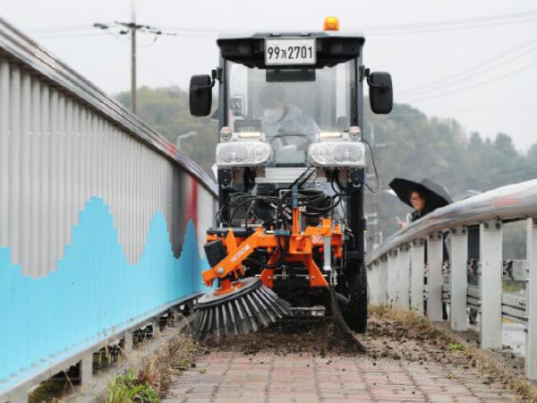 여기에 겨울철에는 회전브러시를 제설기구로 교체해 사용할 수 있는 것이 특징이다.
