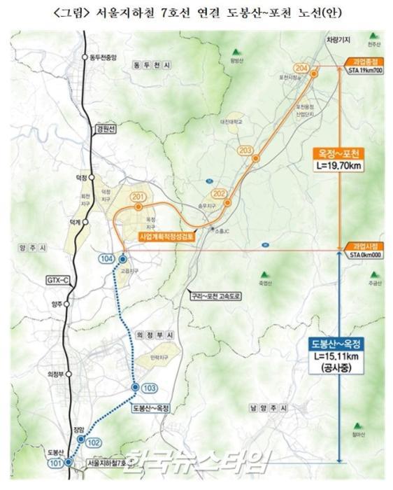 국토교통부는 서울지하철 7호선 도봉산역과 포천을 연결하는 옥정~포천선(19.7km)을 광역철도로 지정하여 5년 단위로 수립하는 법정계획인 제4차 대도시권 광역교통시행계획에 포함시켰다.
