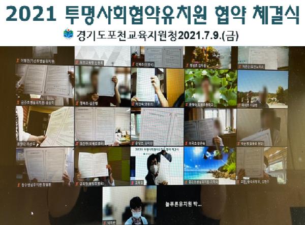 [한국뉴스타임=명기자] 경기도포천교육지원청은 9일(금) 10시 ‘투명사회협약유치원’ 협약 체결식을 온라인으로 실시했다.