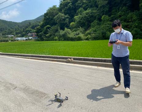 드론을 띄워 논·밭, 비닐하우스 등 야외활동 중인 어르신 등이 확인되면 드론을 통해 예찰활동뿐 아니라 폭염 음성방송 및 안내방송을 하여 온열질환 등 인명피해를 최소화하기 위해 앞장섰다.