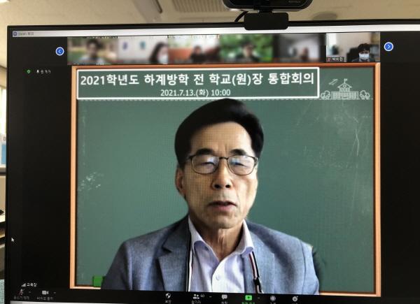 이번 통합회의는 2021학년도 2학기 학사 운영방안 안내를 중심으로 하계 감염병 예방 관리, 방학 중 학생 생활교육, 생명 존중 교육, 초등돌봄교실 등의 순으로 진행됐다.