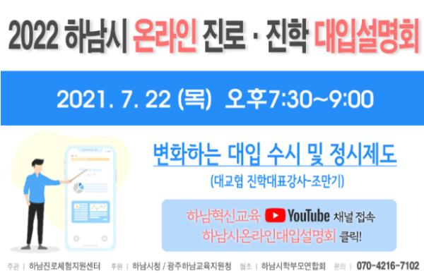 하남시·광주하남교육지원청 후원과 하남시학부모연합회 협조로 진행되는 이번 설명회는 22일 오후 7시 30분부터 9시까지 실시간 방송된다.